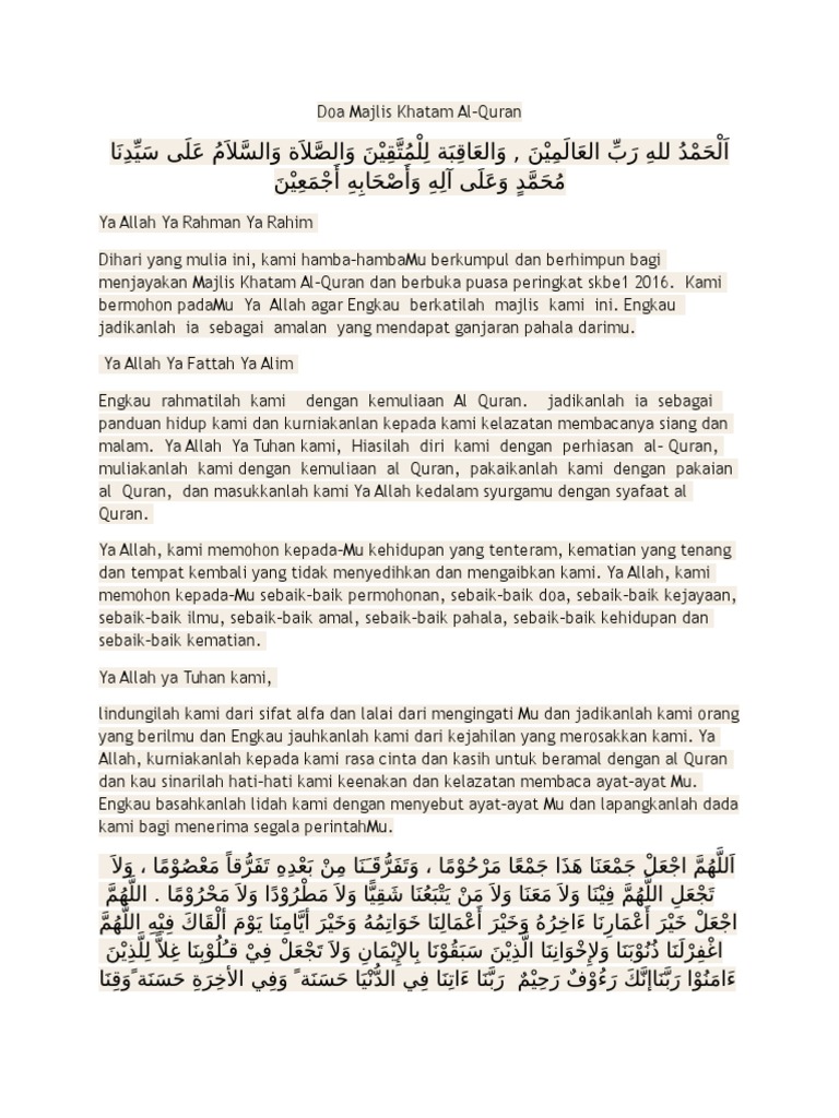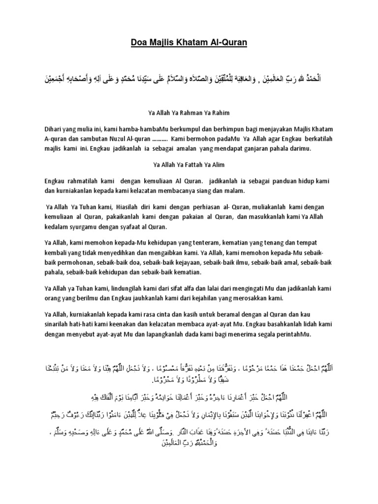 Contoh Doa Majlis Khatam Al Quran Pdf